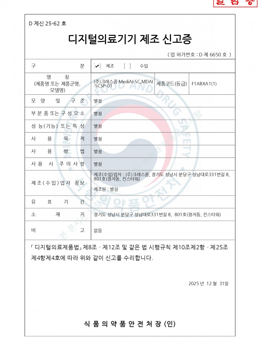 MediAI-SC 제조신고증